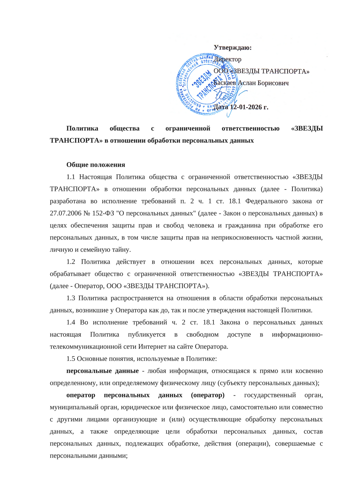 Политика обработки персональных данных